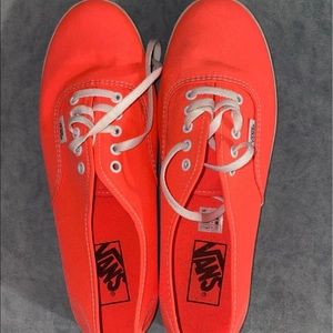 Bright pink VANS, size 9.5 in women’s. Worms twice! Scuff marks on whites of shoe can be seen in picture. Smoke free and pet free home!
