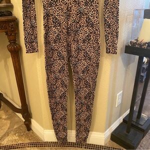 Pre-owned in great condition with no rips or stains. Women’s animal print thermal hooded ears onesie with buttoned front. Comes from smoke and pet free home.