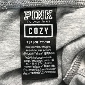 Very nice pair of Pink Victoria's Secret Cozy activewear pants. Gray color block style. Features two side pockets and one hidden pocket on the inside of the waistband. These are like new with little to no wear. Great little pant for yoga, running or any other activity. Size Small. S.