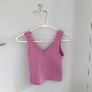 Pink V-Neck Ribbed Crop Top