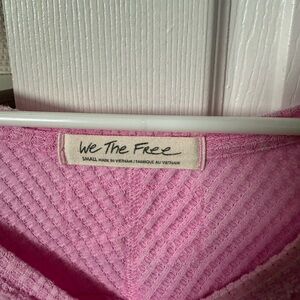 Stylish pink ribbed sweater with a V-neck design. Perfect for casual wear.