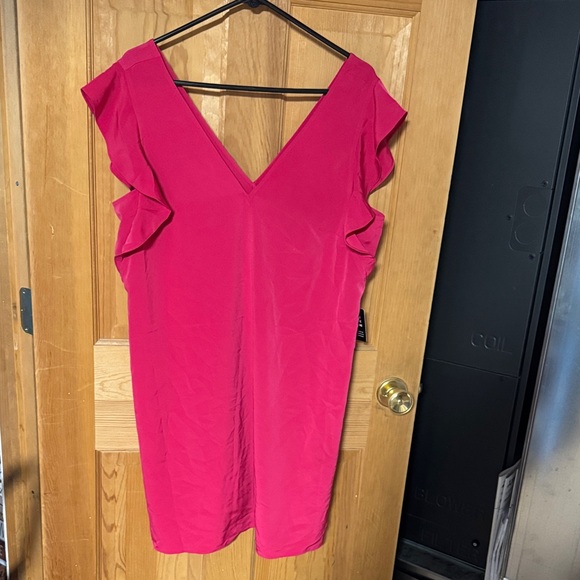 Pink V-Neck Ruffle Dress