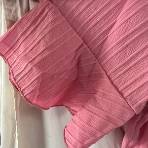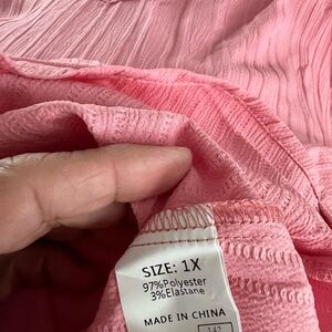 Elevate your style with this chic pink V-neck top. Featuring elegant short ruffle sleeves, it's perfect for any occasion. Lightweight, so it’s perfect for summer. New in bag. Size 1X