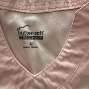 Comfortable pink V-neck scrub top with short sleeves and front pockets. Double front pockets on both sides. Great condition. Worn very little