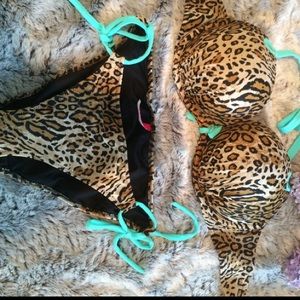 Teal and leopard bikini by VS pink. 36D PUSH-UP top and size medium bottoms! brand new without tags, bought online so no tags. never worn! perfect brand new condition. open to offers!