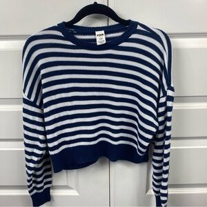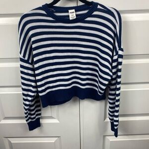 Pink VS Oversized Striped Cropped Sweater Navy Blue And White Small