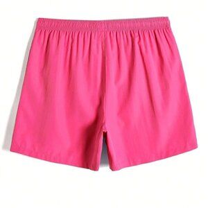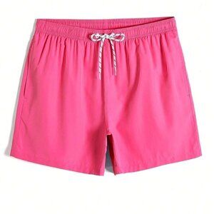 Pink Vacation Style Mens Slant Pockets Drawstring Waist Swim Trunks