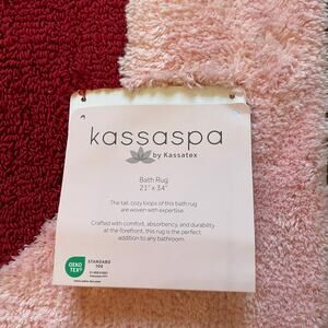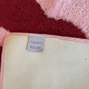 The Kassa Spa Bathroom Rug is a solid pink rectangle made of 100% Polyester. Measuring 21" x 34", it features a lip pattern, anti-skid backing, and durable softness. This bath rug is perfect for adding a touch of holiday luxury to your bathroom decor, especially for Valentine's Day. Easy to care for with machine wash instructions, it is a trendy and colorful addition to any adult's bathroom.