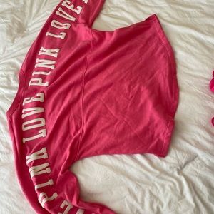 Oversized bright pink varsity tee, like new with only a small crack on one of the letters on the back