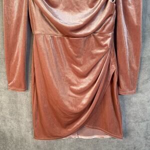 Pink Velvet Mini Dress Long Sleeve Ruched Bodycon Size 6 Party Cocktail
