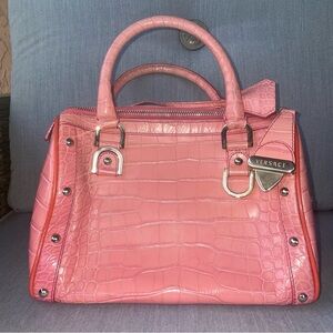Pink Versace Medusa bag croc embossed leather y2k bag Boston duffle top handle
