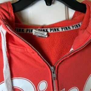 Pink Victoria Secret 1/4 Zip Orange Pullover Sweatshirt Size Medium Emblem