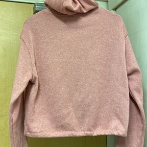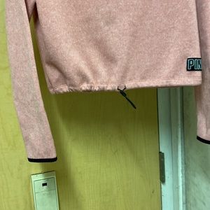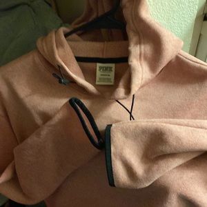 Hooded, pullover sweater hoodie, adjustable drawstring. No pockets, Size- S/P, Color-Pink & black trim on sleeve