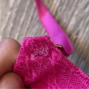 Size 34 DDD only worn once for a costume but is a great condition despite a small pit of piling shown in the photo. Pink/Bright pink bra with extra padding and still had a jist of the original tags. Purchased very recently!