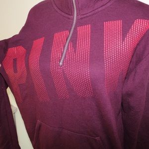 Pink Victoria Secret Maroon Colored Logo Half Zip Sweater - Size Extra Small