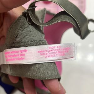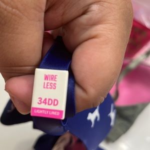 New pink vs bras green one new with out the tags because i thought they would fit but they did not very cute bras size 34dd