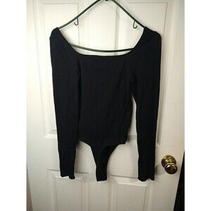 Pink Victoria Secret Woman M Black Long Sleeve Bodysuit Square Neck Ribbed