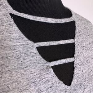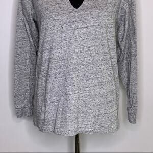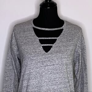 Pink Victoria Secret light gray marled cutout long sleeve tee. Pullover style with cutout at v neckline. Side slit hemline. Large PINK dog graphic on back. Size XS. Excellent preowned conditon. Minor wash wear. 100% cotton.