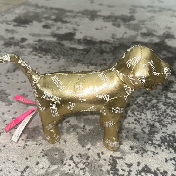 Pink Victoria secret gold metallic logo dog