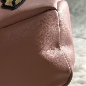 Small Victoria Secret backpack with patchwork. Used but in good condition, all flaws are shown in pictures. (Flaws are mostly small creases)