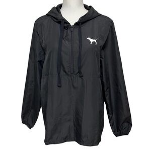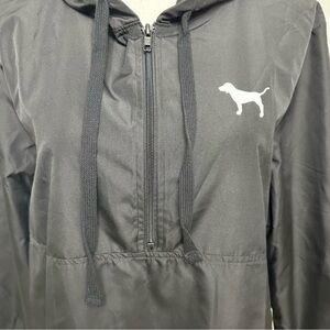 Pink Victoria's Secret 1/2 Zip Hooded Windbreaker Jacket Black Size XS LIKE NEW