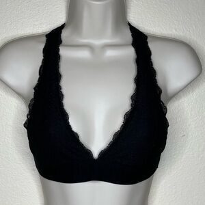 Pink Victorias Secret Black Lace Bralette Racer Halter T Back Women Size Small
