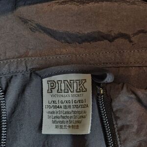 Pink Victoria's Secret Black Windbreaker Zip Up Jacket w Hood sz L/XL