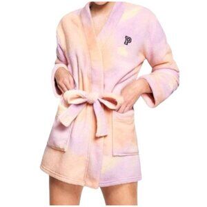 Pink Victorias Secret Comfy Tie Dye Bath Short Robe Long Sleeve Womens XS/S