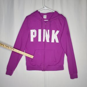 Pink Victorias Secret Fleece Tracksuit Hoodie Medium Purple Full Zip Pocket Logo