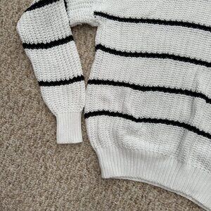 - Style Features: Striped Knit Oversized Drop Shoulder Sweater