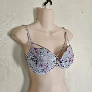 Pink Victoria's Secret Gray Floral Print Date Push Up Bra Size Women's 34C