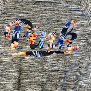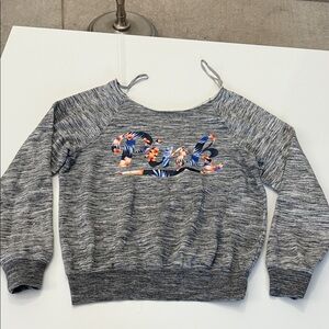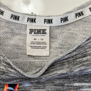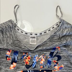 Pink Victoria's Secret Gray Off-the-Shoulder Sweater with Floral Logo Size XS