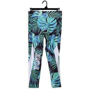Pink Victoria’s Secret Green Tropical Palm Leaf Tricot Yoga Leggings Size Large