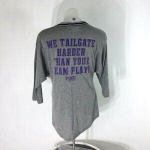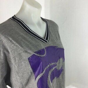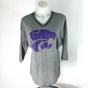 Pink Victoria's Secret Kansas State KSU Logo V-Neck 3/4 Sleeve Top Gray Medium