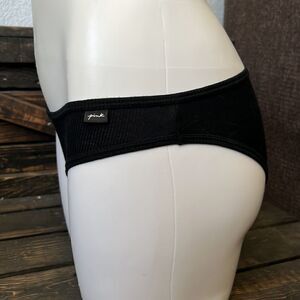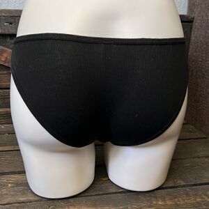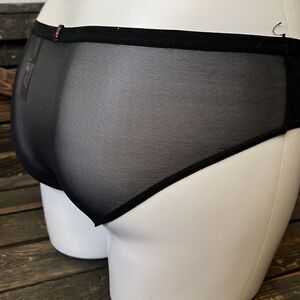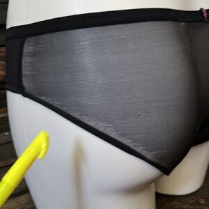2 in great condition the black & blue black thong those didn’t use, and 1 black mesh extra low rise panties in preowned condition shows some wear see pict on the side ending of trim