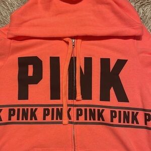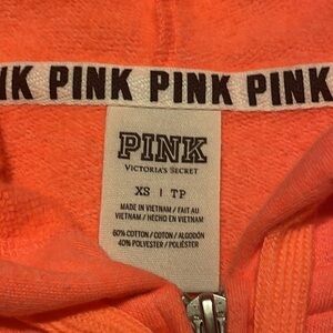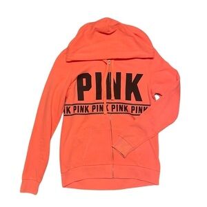Pink Victoria’s Secret Orange Zip Up Hoodie Size XS