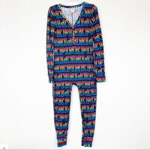 Pink Victoria’s Secret Rainbow Spell Out Butt Flap One Piece Pajamas Sz M