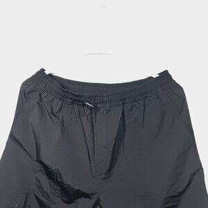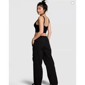 These Pink Victoria's Secret Satin Parachute Cargo Pants in size M are perfect for women looking for a comfortable and stylish option for everyday wear or travel. The wide-leg style, adjustable waist, and elastic waistband make them an easy and convenient choice. Made from a blended fabric with a drawstring closure, these pants also feature pockets for added functionality. With a solid black color and subtle brand logo detailing, they are designed for comfort and breathability, making them ideal for a variety of activities such as walking, skating, or casual outings. Perfect for the fall and spring seasons, these pants are machine washable for easy care.