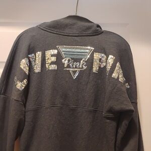 Pink Victoria's Secret Sequined Dark Gray 1/4 Snap ButtonSweater Size XS
