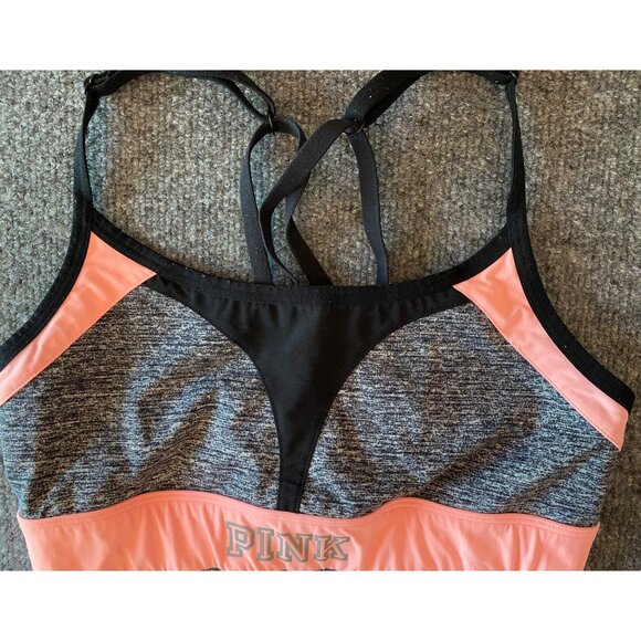 Pink Victoria's Secret Strappy Back Sports Workout Bra Women Small Peach/Black