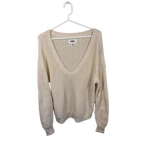 Pink Victoria’s Secret Sweater V-neck Long Sleeve Knit Pullover Cream Size M