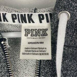 Pink Victorias Secret Sweater Womens Small Silver Sparkle Hooded Pullover