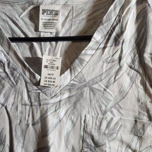 NWT. V neck short sleeve cream color with grey floral print. LOVE PINK on back. Loose fitting. Smoke free home.