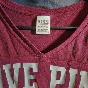 Like new. Barely worn. Lightweight with V neck. Light maroon/coral colored short sleeve tee with logo across the breast. Smoke free home.
