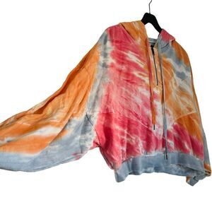 Pink Victorias Secret Tie Dye Cropped Hooded 1/4 Zip Sweatshirt Dolman Sleeve