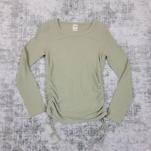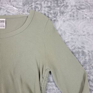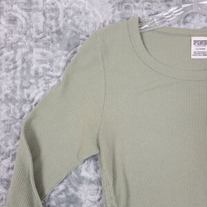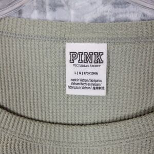 Pink Victorias Secret Top Women's Large Green Shirt Logo Waffle Knit Thermal