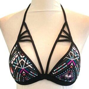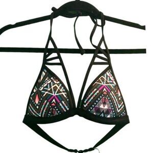 Pink Victoria's Secret Triangle Aztec Pattern Lattice Straps Bikini Top Size XS