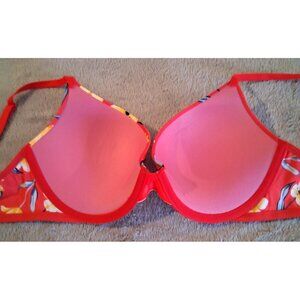 Pink Victorias Secret Wear Everywhere Bra Red Floral Padded Push-up 34C