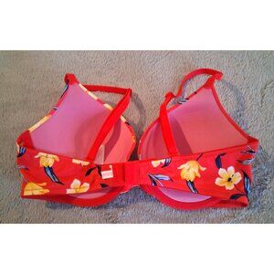 Pink Victoria's Secret Wear Everywhere Bra Red Floral Padded Push-up 34C