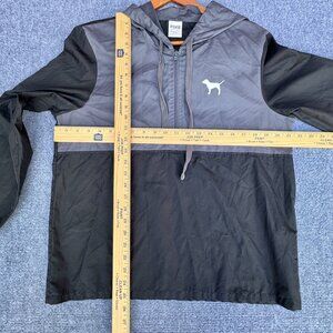 Pink Victoria's Secret Windbreaker XS Black Gray Hooded 1/2 Zip Pullover